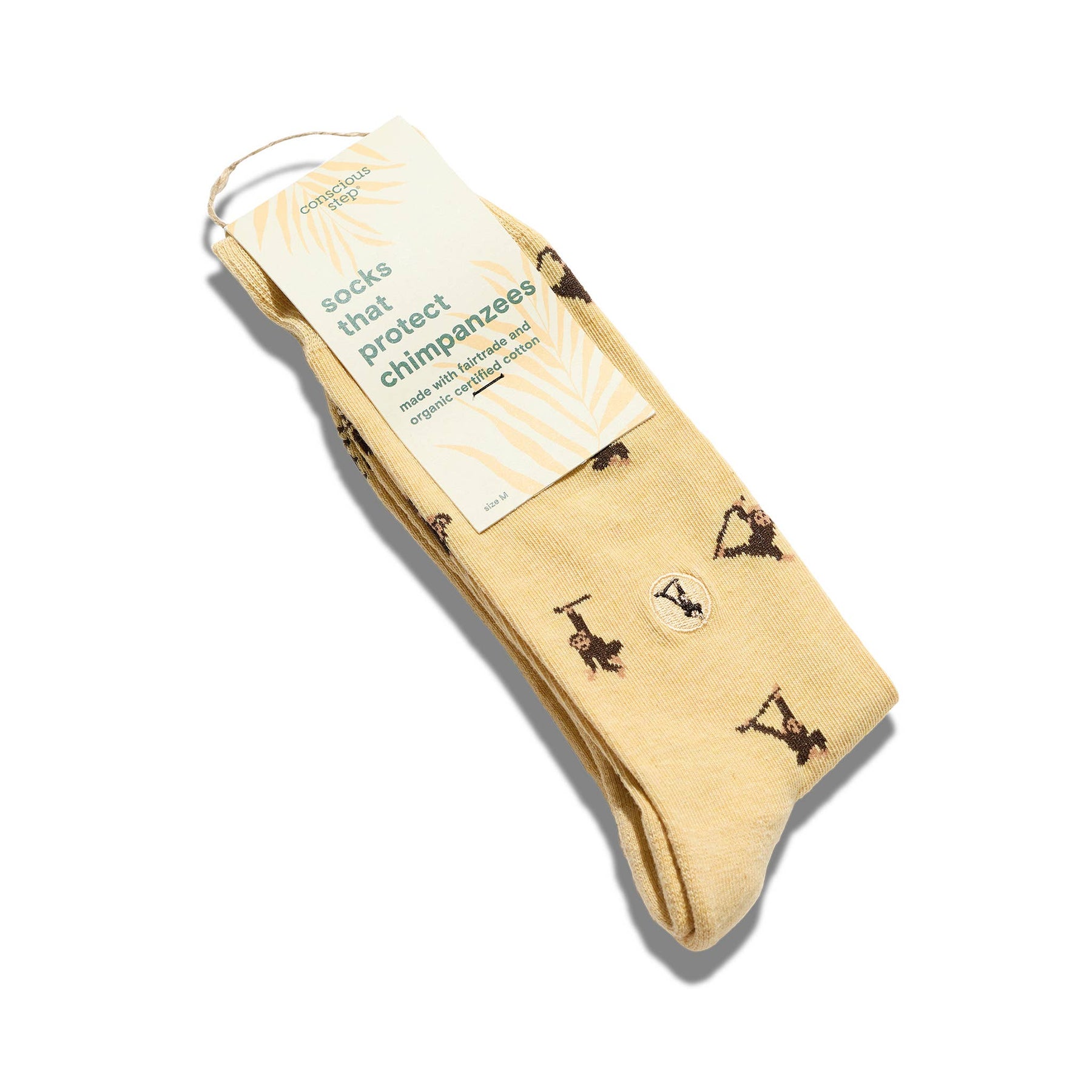 Socks that make you want to hang around! Add a playful swing to your style with these yellow socks featuring cheeky chimpanzees and support their conservation. • Each pair works to protect our planet's wildlife and their critical habitats with Conservation International. • Small fits women’s US shoe sizes 5-9, men's US shoe sizes 4-8, and EU shoe sizes 36-40. • Medium fits women’s US shoe sizes 9-14, men's US shoe sizes 8-13, and EU shoe sizes 41-47. • Sustainable • Certified Organic • Certified Fairtrade • Certified Vegan • Members of 1% for the Planet