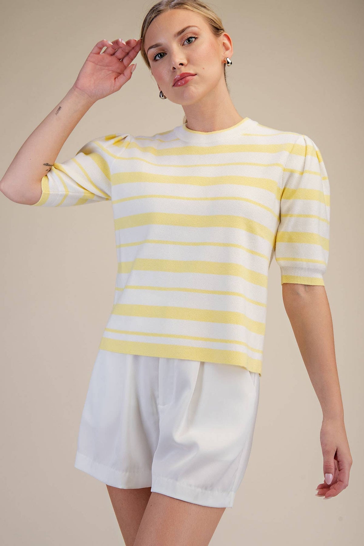 Eden Round Neck Short Sleeve Knit Top- Yellow