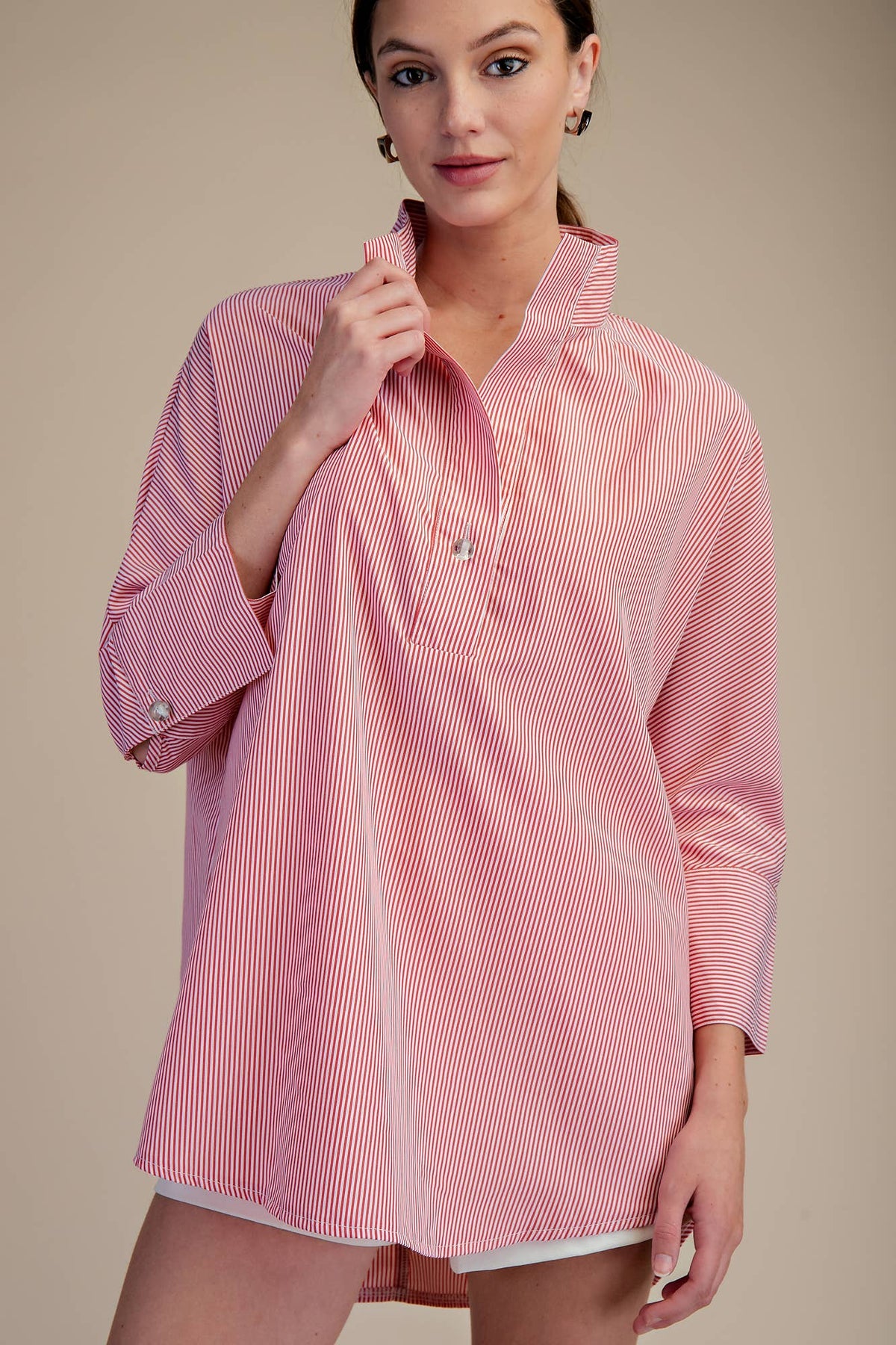 Clara Stand Neck Dolman Sleeves Shirt- Red - Pine & Moss