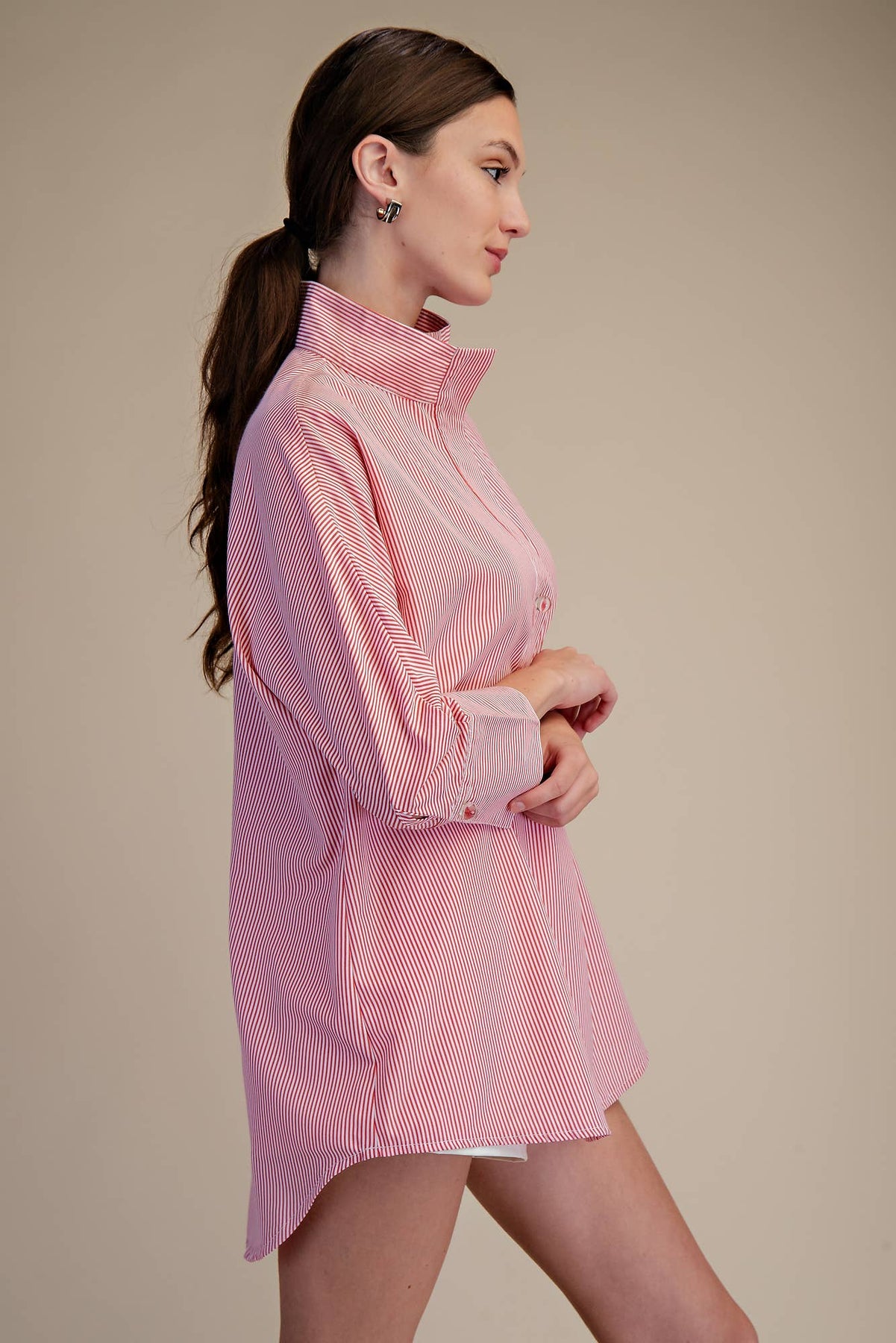 Clara Stand Neck Dolman Sleeves Shirt- Red