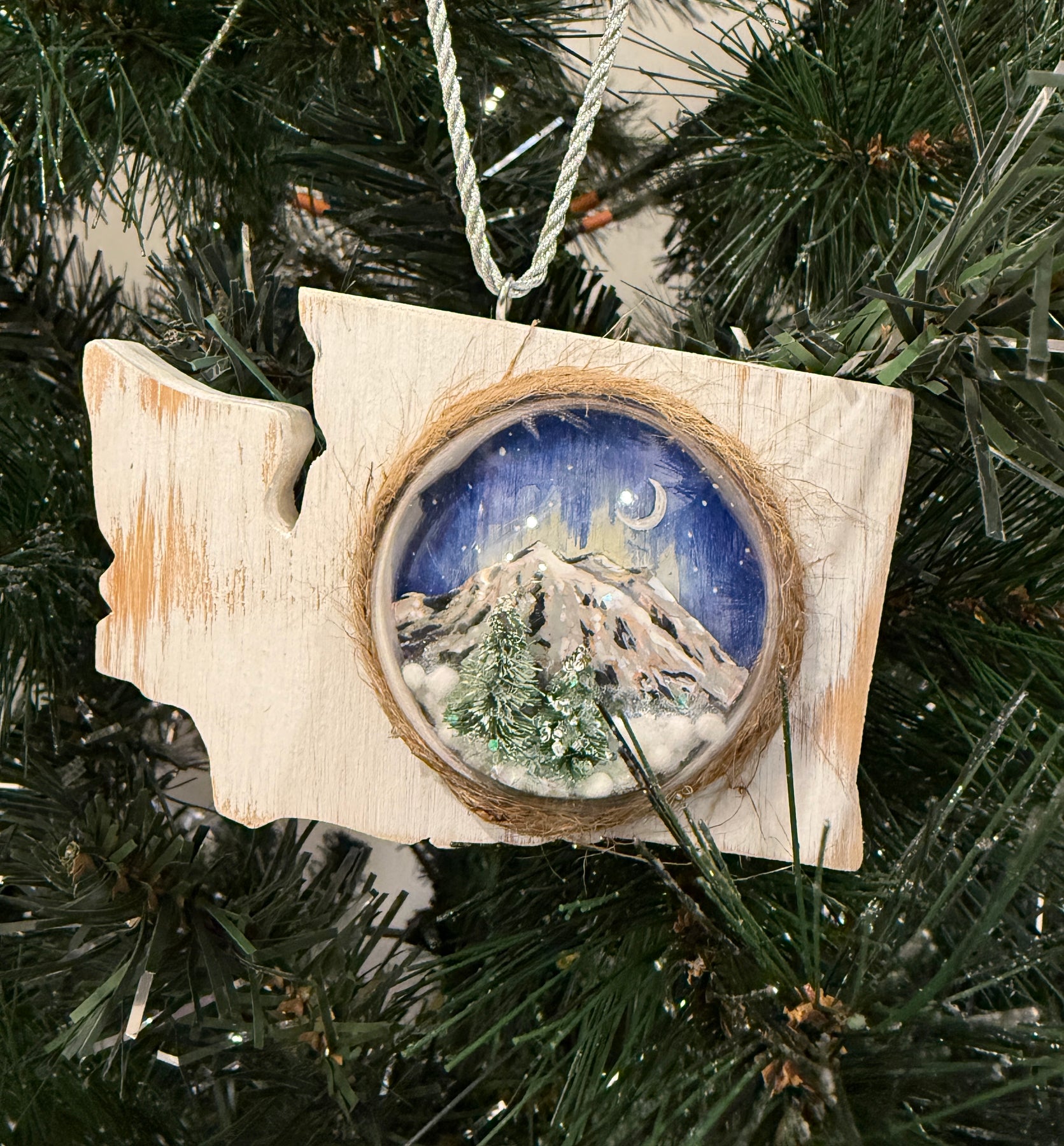 Beautiful handmade wood and acrylic ornament to commemorate your special 2024 Christmas in Washington or give as a gift to that special hard to buy for person. Featuring gorgeous Mt. Rainier in the daytime.