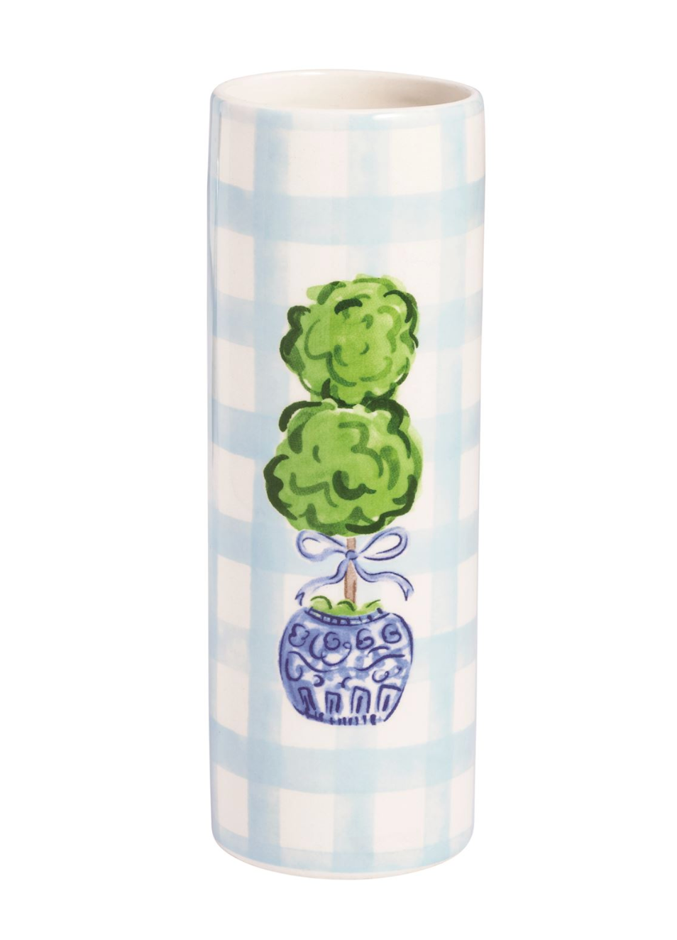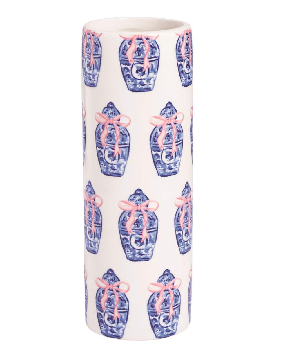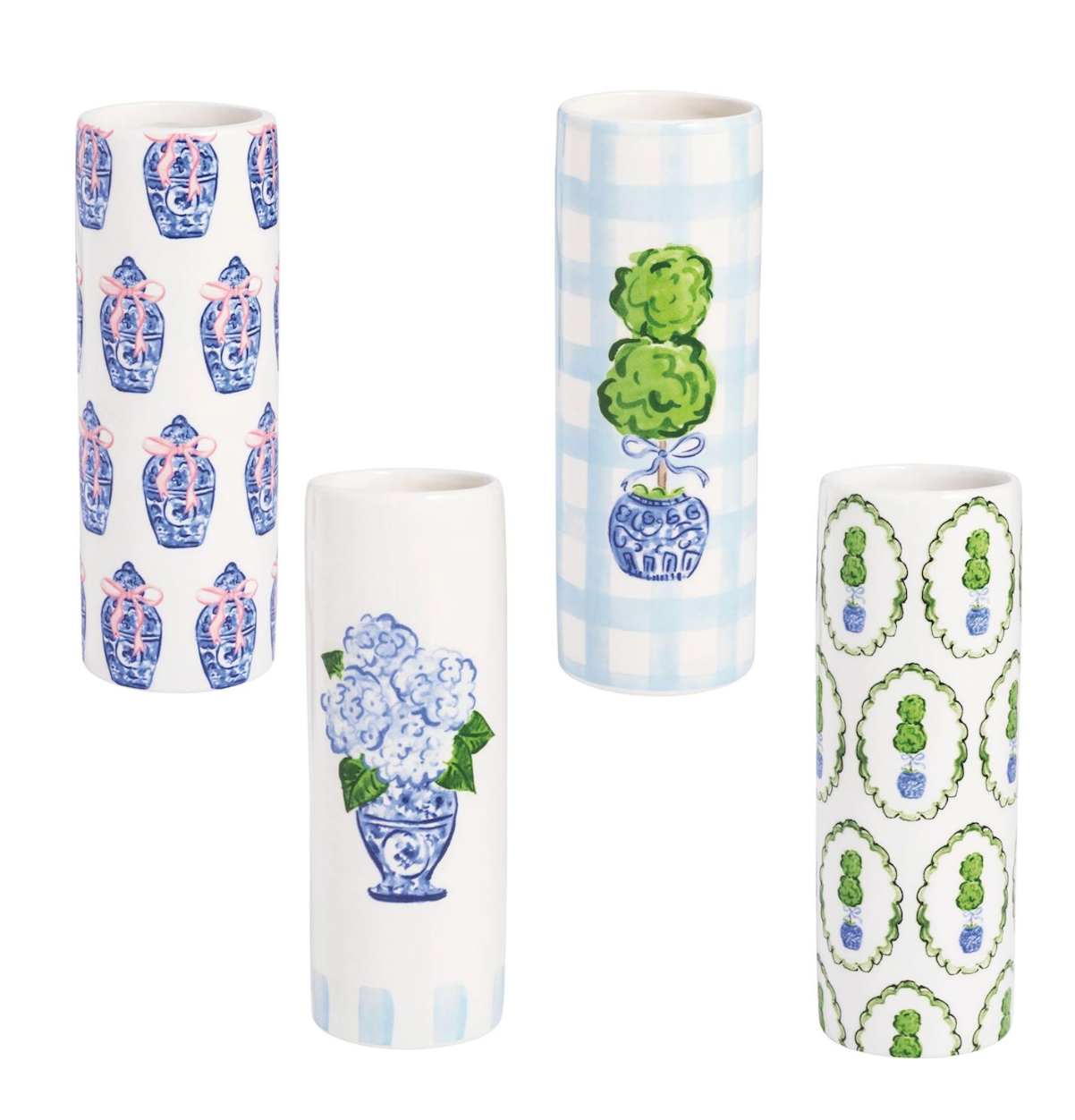 Bud Vase crafted from high-quality glazed ceramic, featuring an intricate and timeless design inspired by traditional ginger jars. This elegant vase is perfect for showcasing your favorite blooms, adding a touch of sophistication to any room. Made from durable dolomite, it ensures long-lasting beauty and functionality. Ideal for home decor, gifting, or enhancing your personal collection, this vase effortlessly complements a variety of interior styles. Its compact size makes it versatile for placement on shelves, mantels, or tabletops, creating a charming focal point in any space. 6 1/2" x 2 1/4"dia