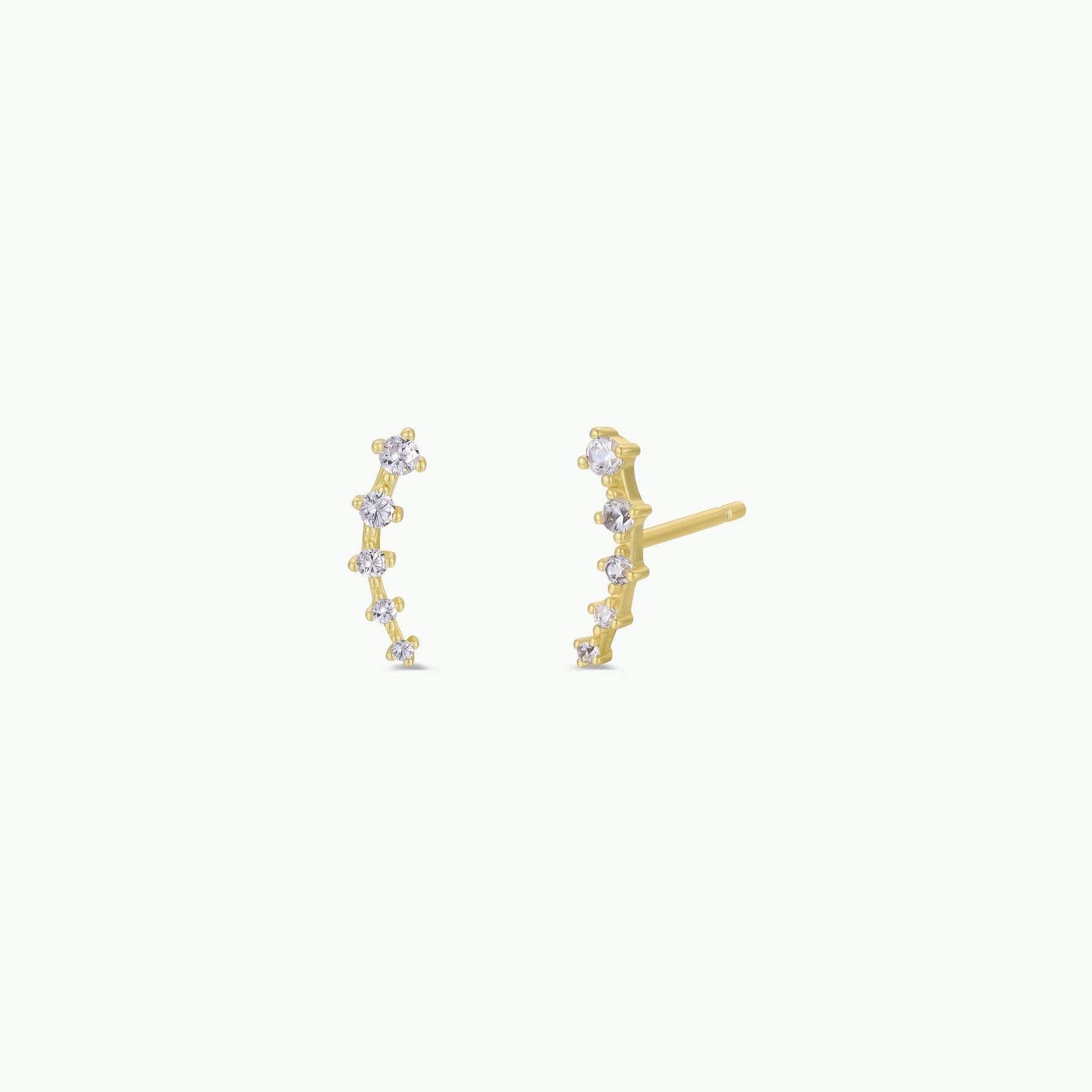 Delicate white cubic zirconia stones dance along a graceful curve in these charming crawler earrings. Crafted with hypoallergenic sterling silver posts and finished in luxe 18K gold plating, they're built to sparkle through your busiest days. Our tarnish-free protective coating keeps them looking fresh against sweat, water, and whatever adventures come your way. Lead-free stones mean you can wear them worry-free, all day long.