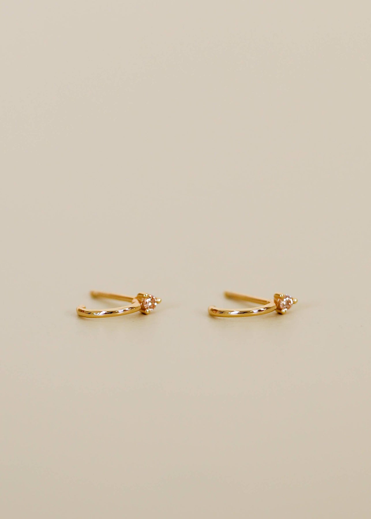 Petite yet mighty, these open mini hoops bring understated sparkle to any look. The champagne CZ catches the light beautifully while the snug fit keeps them secure all day long. Crafted with hypoallergenic sterling silver posts and 18K gold plating, they're built to withstand your lifestyle—sweat, water, and everything in between won't fade their shine. At just 7mm with a delicate 2mm stone, they're the perfect everyday companion that works solo or stacked with other favorites.