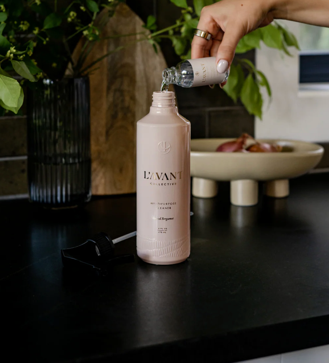 Three times the convenience. With our Multipurpose Surface Cleaner Concentrate, refilling your elegant L’AVANT 16 oz. spray bottle is a breeze. Packaged in 1 oz. eco-luxe glass bottles, going the refill route makes our powerhouse plant-based cleaner even more responsible. Less plastic waste means you’re being gentler on the environment, and this trio of beauties is easy to ship and easy to store.