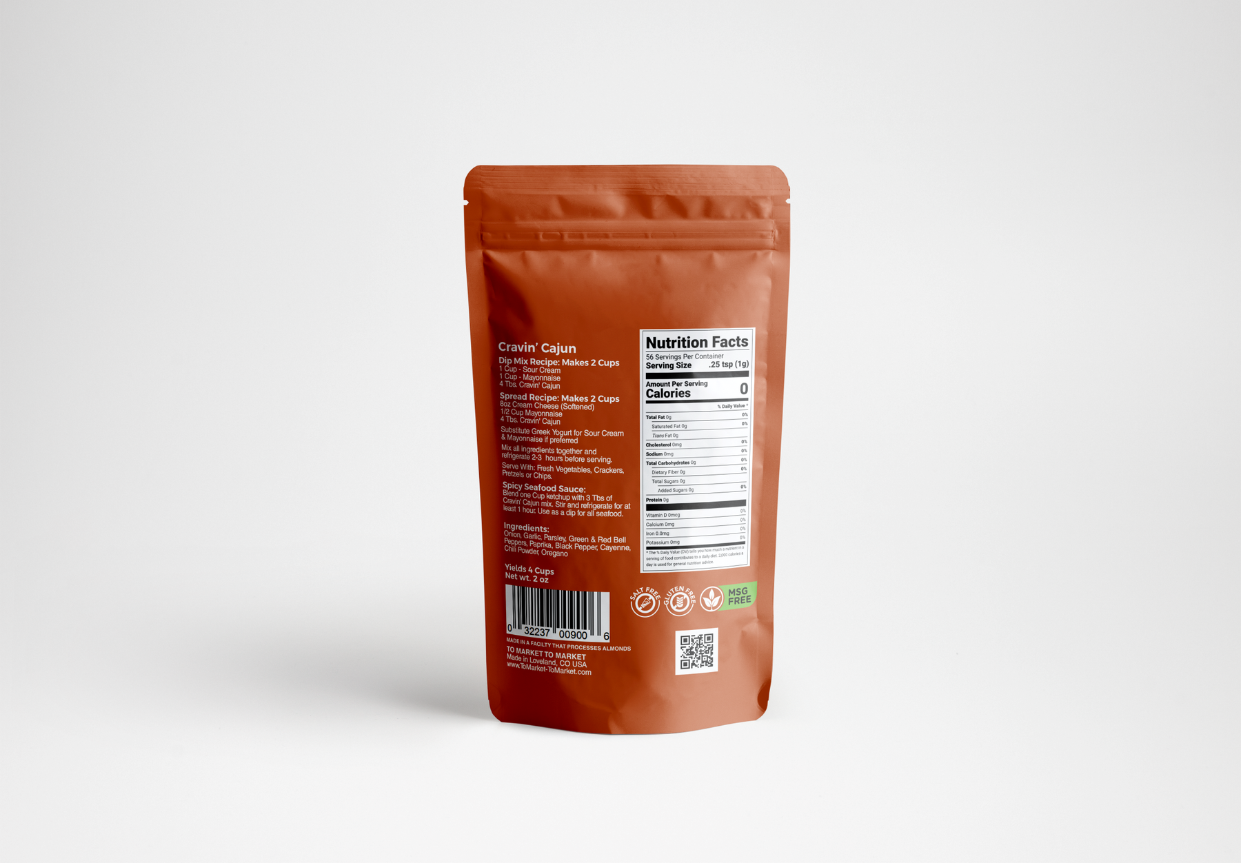 Bring authentic Cajun heat to your kitchen with this bold seasoning blend! A masterful mix of onion, garlic, green and red peppers, paprika, pepper, cayenne, chili powder, and oregano creates the perfect foundation for seafood dishes, soups, and sauces. Whether you're coating shrimp, simmering a gumbo, or crafting a spicy seafood dip, this versatile mix delivers genuine New Orleans flavor. No MSG, chemicals, preservatives, or salt means pure, honest taste you can feel good about. Naturally gluten-free too. Get ready to turn up the flavor!
