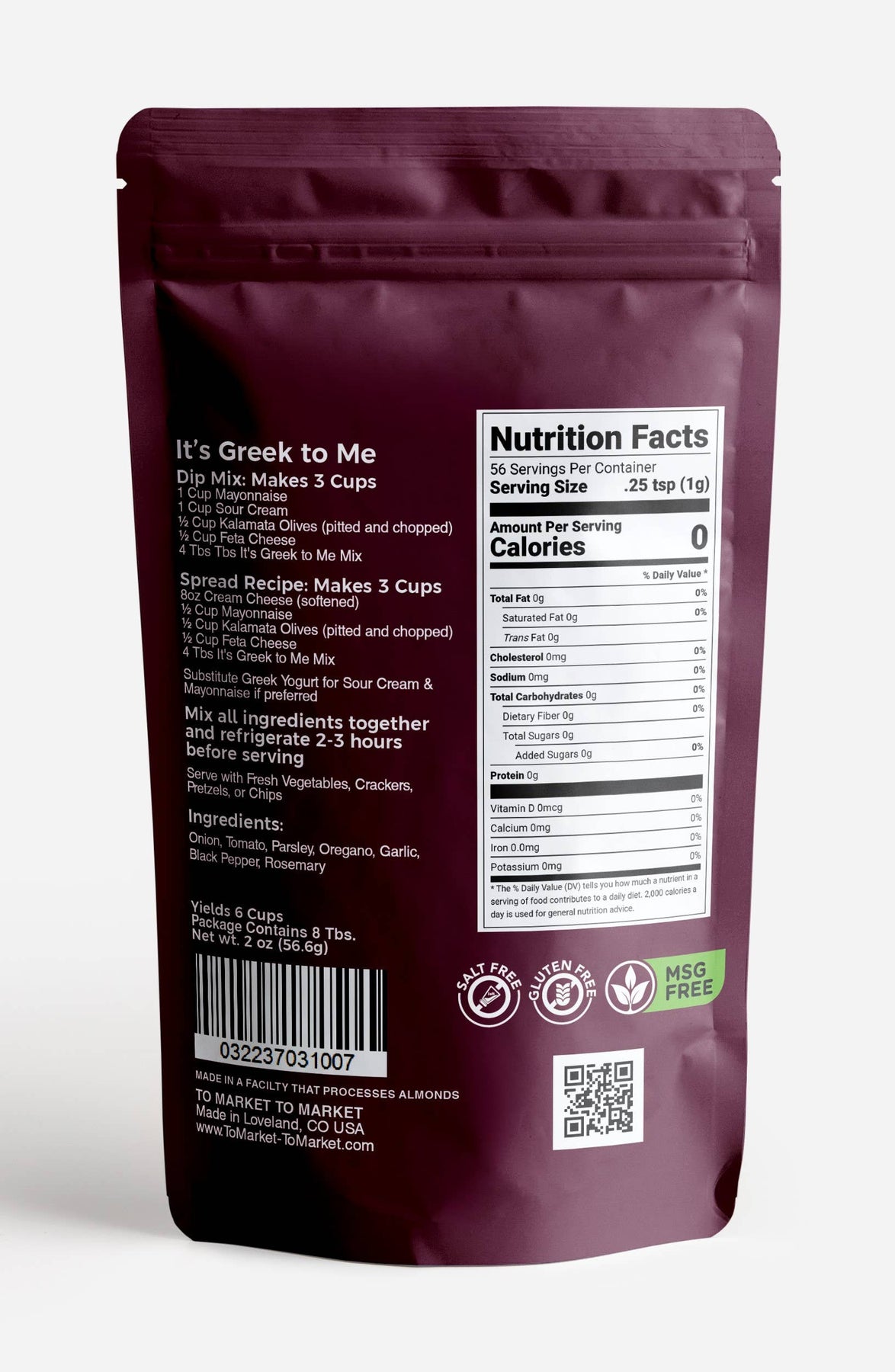 Transport your taste buds to the Mediterranean with this Greek-inspired seasoning blend! Featuring onion, tomato, parsley, oregano, garlic, black pepper, and rosemary, it's the foundation for two completely different creations. Mix with cream cheese and mayo for a feta and olive spread that's perfect on bagels and crackers, or combine with sour cream and mayo for a dip that'll have guests asking for your secret. Each package yields two batches, and the flavor deepens beautifully over time. Clean ingredients—no MSG, chemicals, preservatives, or salt—and naturally gluten-free. Opa!